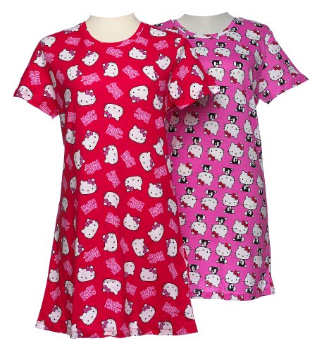 100% cotton nightshirt with licensed Hello Kitty prints. Hello Kitty pink kitty face gift pack included. This sleepshirt has more of a junior fit.